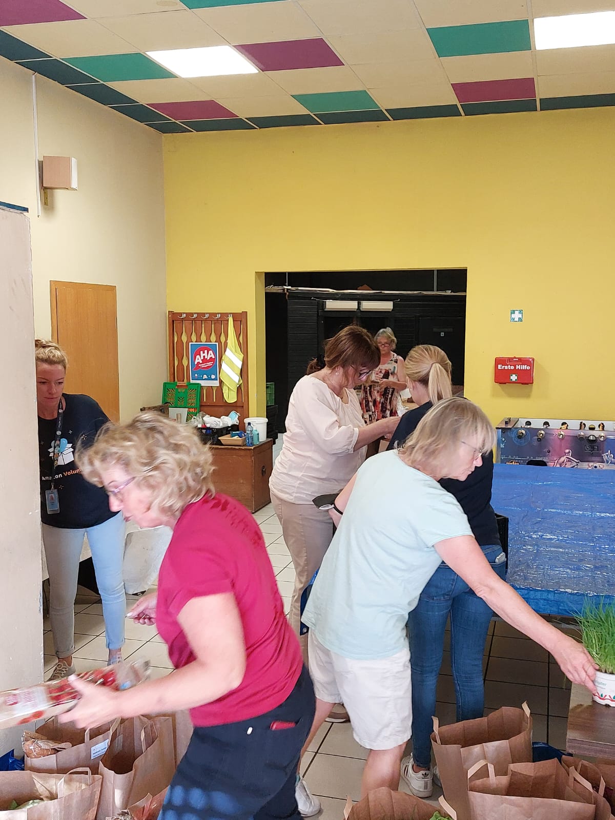Unter diesem Motto und voller Tatendrang besuchten am 23.08.2022 Céline Efferz, Assistentin der Geschäftsführung, sowie Julia Bauscher vom Amazon-Standort Frankenthal das Netzwerk-Team der Tafelfreunde. Es wurde kräftig mit angepackt, Kisten geschleppt und sortiert. Zum Schluss konnte sich das Ergebnis sehen lassen. Tüten für 26 Haushalte waren gepackt und zur Ausfahrt vorbereitet. Bei der Übergabe des „großen“ Schecks war allen klar: Das Geld ist hier sehr gut angelegt. Ein dickes Dankeschön an alle, die zum Gelingen dieser Aktion beigetragen haben. Vor allem aber an unseren Netzwerker Peter Ditscher, der durch seine guten Kontakte zum Hause Amazon auch schon manchem Schützling zu einem guten Arbeitsplatz verhelfen konnte. Wir freuen uns sehr über diese vorbildliche und konstruktive Zusammenarbeit!