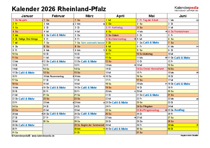 Öffnungszeiten / Terminplan 1. Halbjahr 2026